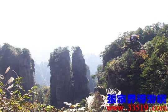 (山頂環(huán)覽線:五指峰、前花園、黑樅垴)朋友們!這里的每一座巖峰都是一件古老的藝術(shù)品,每一座巖峰都隱藏著大自然的無(wú)窮奧秘。面對(duì)如此壯美雄奇、氣象萬(wàn)千的砂巖峰林風(fēng)光,幾年前,一位來(lái)自東北的女作家,就站在黃石寨(黃獅寨)上感嘆道:看了張家界的風(fēng)光,覺得真可以死了。接下來(lái)她又說(shuō),看了張家界的風(fēng)光,覺得更有理由好好活了。兩句話看起來(lái)前后矛盾,其實(shí)不然:前一句是說(shuō)能見一到像張家界這樣奇美的風(fēng)光,此生足矣;后一句是說(shuō)人生是如此美好,理應(yīng)更加珍愛生命。大家說(shuō)對(duì)不對(duì)? “人生不到張家界,百歲何能叫老翁。”