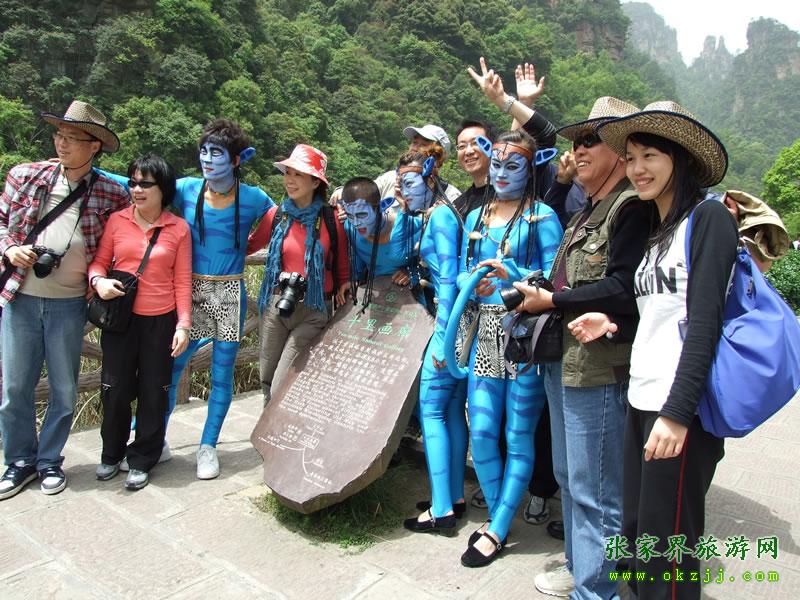 游客和納美人合影