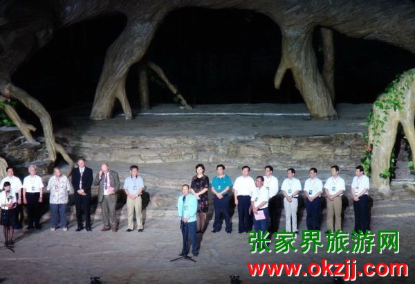 在天門山景區(qū)全球最大的玻璃鋼舞臺(tái)上,在開幕式上試演的世界第一臺(tái)大型山水實(shí)景音樂劇《天門狐仙》,拉開了’2009中國(guó)湖南國(guó)際旅游節(jié)張家界民族文化周的序幕。