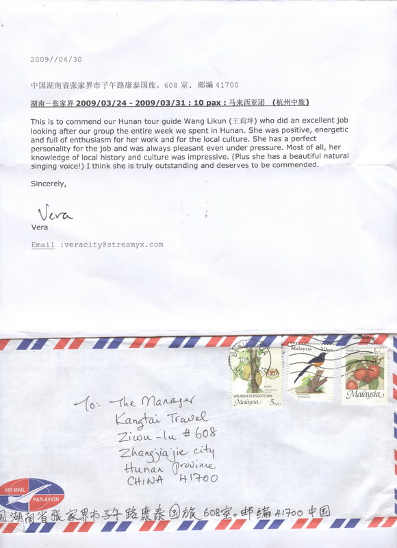 - 游客夏先生為表?yè)P(yáng)導(dǎo)游李姣姣寫來(lái)表?yè)P(yáng)信致我張家界... [14811]