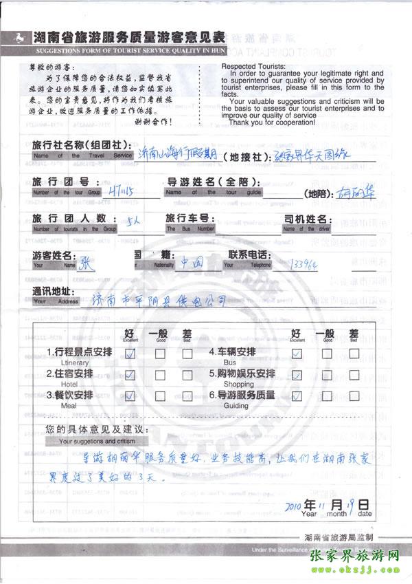 - 2011年10月26日張小姐一行18人旅游質(zhì)量反饋 [10482]