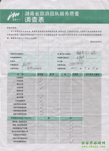 2011年5月16日應先生一行3人旅游質(zhì)量反饋