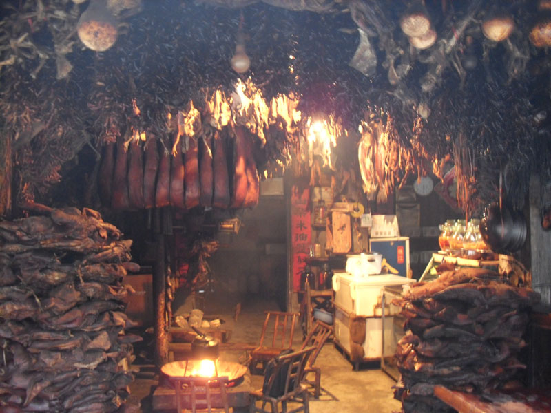 如果你想品嘗正宗的煙熏臘肉,還非得在張家界景區(qū)內(nèi)吃。在景區(qū)內(nèi)當(dāng)?shù)厝碎_(kāi)的小飯館里可以吃到被炭火烤得烏黑的香噴噴的臘肉,只要把外層洗掉就行了。這種臘肉在城里是不可能吃到的,它是在農(nóng)家的灶上慢慢烤出來(lái)的。