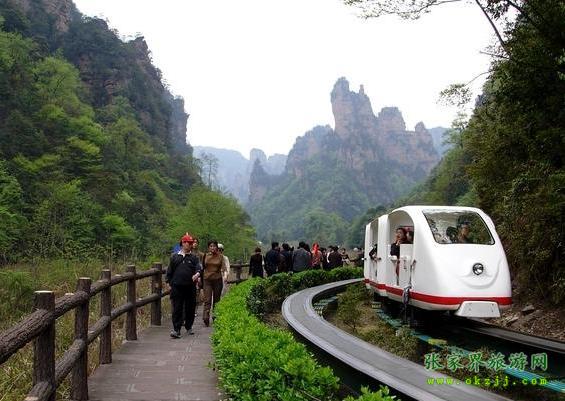 在十里畫廊盡頭。這里怪石嶙峋,林木蔥籠,常有三五成群成百上千只猴子在此會集,故稱猴子坡。游人至此,或樹叢之中,或山間古道,常見群猴在懸崖絕壁上攀援嬉戲,有的盲目在藤蔓上攀跳,有的獨坐巖石抓耳搔腮。惹得游人眉開眼笑,興味無窮。 從南天門向?qū)γ嫱?,可見三座瘦削石峰,形如美女,婷婷玉立,故?ldquo;三女峰”。三女峰尤以第三峰奇妙,于石峰胸部有一直徑約1米乳眼, 由孔中可窺山后天光,既像高懸在石壁上的明鏡,又像少女佩帶著一枚晶瑩透明的玉飾。 過南天門繼續(xù)登山約200注,有一岔道口,叫月亮埡, 往右便是天子山石家檐景區(qū),向右斜上則通天臺。天臺海拔1020米,有東西兩個觀景臺。東臺為一懸空巨石,四周雜樹叢生,古松倒掛,是觀日出的理想之所。西臺俯視西海最妙,但見幽深莫測的峽谷中,千峰聳立,戴翠披綠,秀麗的景色盡覽眼底。 十里畫廊觀光小火車票價:單程30元/ 人,雙程40元/人。優(yōu)惠門票價格單、雙程由現(xiàn)行每人次14元和19元調(diào)整為18元和24元。 優(yōu)惠政策規(guī)定:根據(jù)有關文件規(guī)定,十里畫廊觀光電車門票價格對身高不足1.2米的兒童實行免費;對身高1.2米至1.5米的未成年人實行優(yōu)惠;對24歲以下學生憑學生證享受優(yōu)惠;符合《殘疾人實用評定標準》的殘疾人、60周歲以上老人、現(xiàn)役軍人、烈士直系家屬、持有民政部門頒發(fā)的《城鄉(xiāng)居民最低生活保障金領取證》的人員憑有效證件享受優(yōu)惠;此外可在特定日期對特定群體(如教師節(jié)對教師、建軍節(jié)對軍人等)實行減免優(yōu)惠。 湖南唯一一家全國百強國際旅行社、湖南五星級旅行社:華天國際旅行社 品牌卓著,信譽度高,是游客理想選擇接待單位。