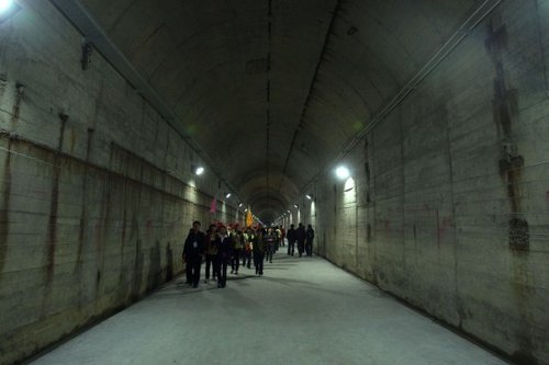 游客在816地下核工程參門口 游客在816地下核工程參觀