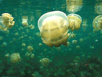4.帕勞群島巖石島 水母湖 即便是潛水的“老手”也表示,在這里的體驗(yàn)是其潛水生涯中“最不可思議的經(jīng)歷”。湖中水母成群,但它們不會(huì)刺人,潛水者可以與水母一同暢游,或者捧起它們觀賞,完全不必?fù)?dān)心會(huì)受傷。