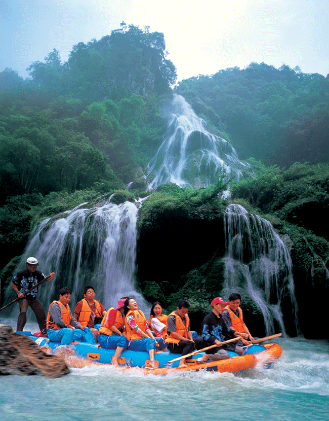 到了大門口,彭導幫我們?nèi)ベI了門票,248元/人,共花去496元。彭導先前給我們預算是,按最經(jīng)濟的帳目來算的,470元/人(包括進山大門票,但不包括索道、天梯、酒水等),他說出門在外,能節(jié)約點就節(jié)約點。當然他也知道我們可能會超出這個標準,如果有必要,到時可以再自己花費。買了門票后,我給了他500塊,算是這幾天的費用,他說,不是說好是每人470的嗎,你應該是給我444塊。我說,上次謝謝您的關(guān)心,這次不能讓你太吃虧了。彭導說,那今天晚上我叫店家給你們加個菜,呵呵呵。 下午,我們玩了森林公園中的黃石寨和金鞭溪。看了天書寶匣、點將臺、南天柱、摘星臺、六奇閣,五指峰、金鞭溪、金鞭巖、文星巖、紫草潭、千里相會等,彭導果然是彭導,有著二十年的導游經(jīng)驗的他就是不同凡響啊,個個景點都是如數(shù)家珍,說得是頭頭是道。(據(jù)網(wǎng)上說,有些導游是只帶路不講解,讓人只是看看表面,而無法去領(lǐng)略張家界那些精美絕倫的凄美傳說。我個人認為張家界的傳說也是應該值得每一個游人去了解,去領(lǐng)略的,如果你來張家界沒有聽到這些傳說的話,那一是你的導游的水平問題,二是你的一個很大的遺憾,你來張家界的經(jīng)歷是不完美的),什么龍蝦花的來歷,金鞭巖的前身,秦始皇和孟姜女與張家界的關(guān)系。晚上乘百龍電梯上袁家界(張家界的核心)一家旅館住宿。晚餐時,一葷一素一湯。我們吃著吃著,老板笑咪咪的搬上一鍋火鍋,當?shù)氐耐岭u火鍋。我們很詫異,我說,我們沒有點這個菜?。±习?,你是不是弄錯了?老板說,這是你們彭導叫我特地做的。我突然明白了,一定是彭導是為我多給的那50多塊錢了。由于長途奔波,加上下午又走了很多路,晚上洗了一個澡就睡下了。山里的氣溫很低,在這全國都如火爐時,張家界的晚上卻要蓋很厚的被子,真是一塊寶地啊。 第二天早上,我們參觀了袁家界的風景,其中最有名的當然數(shù)天下第一橋,這是由兩座巖石山的山頂自然生長在一起,非人所能為也。天下第一橋的稱號當之無愧啊。當然在袁家界,后花園也是不能不看的。張家界號稱“峰三千,水八百”,在這里你就能明顯的感覺到這句話的前半句是那么的實在??赐陱埣医绲暮诵脑医纾覀兂塑嚨搅?a class="insidelink" href="http://www.lkqczs.cn/scenic/zjjjq/1529295057.html" title="天子山">天子山(張家界景區(qū)內(nèi)的最高的地方)。玩了賀龍公園、御筆峰、仙女散花、西海、石船出海、仙人橋、天子廟、十里畫廊、一步難行。不巧的是,那天山上下了一點陣雨,雨后一條彩虹掛在天上,更重要的是山上起了一點霧,使整座山都籠罩在霧中,若隱若現(xiàn),看上去就象是在云海中,好象老天特地配合我們似的,難得一見的西海等正好被我們趕上了。彭導告訴我們,這樣的機會是很難得的,可能是張家界為了感謝我的再次到來,給了我一個特別的禮物吧。我大笑。晚上趕到昨天住的地方去住宿。不提。 第三天我們玩了烏龍寨、三道鬼門關(guān)、天波府、一步登天、空中走廊等。主要是在楊家界的景區(qū)范圍內(nèi)。本來是第三天下午要去鳳凰的,但是考慮到我和女友小嵐好容易來張家界一次,盡量將張家界的能玩的地方去玩一下。我也曾聽說張家界不僅峰三千,水八百,同時天然溶洞也是非常不錯的,據(jù)說其中一個溶洞為一根鐘乳石投保了1個還是2個億,(不怎么記得了,呵呵。)而且在張家界的宣傳資料上還看到了有漂流,打水仗等非常刺激的項目。我于是問一下彭導,能否幫我們聯(lián)系一下,彭導很爽快的答應了,他幫我們聯(lián)系了九天洞和茅巖河的公司。在彭導的上下打通下,本來是315元/人的行價,硬是給用278元/人的價格給拿下了。當搞定這些時,已經(jīng)外面是天黑一片了(彭導家就在楊家界)彭導說他想回家看看,明天我們會和一群人去看洞和漂流,他就不陪我們?nèi)チ?,明天下午他會在張家界市區(qū)去接我們,到時會有車送我們?nèi)ナ袃?nèi)。然后他會送我們上去鳳凰有車,并幫我們?nèi)ヂ?lián)系鳳凰的朋友來招待我們。 第四天,清晨我們便踏上了汽車去看洞漂流。號稱亞洲第一大洞的九天洞果然是名不虛傳,我們把它現(xiàn)在開發(fā)的部分粗略的走了一下,就花了我們近月4個小時,洞中鐘乳石遍地,在五彩斑闌的燈光下,顯得晶瑩剔透,閃閃發(fā)光,讓人感覺到是到了水晶宮一般,地下還有陰河,遠處通知海(據(jù)說)。對了,洞中溫度很低,常年在10多度。讓人在其中感覺到一陣陣寒意。故想進去的朋友記得多穿點衣服,以免著涼,切記。我們當時就是吃了很大的虧,從洞中出來時,小嵐就在點喀漱。下午來到茅巖河漂流。上船前看到有人賣水瓢,心中不免奇怪。雖說,張家界金鞭溪的水可以喝,但也不是每一條河的水都能喝?。坑谑巧锨叭?,一打聽才知道,這瓢不是用來舀水喝的,而是用來打水仗的。本來因為小嵐有點小感冒,我們打算保持中立,但一看到各位船友們個個磨拳擦掌,人手一把瓢或者水槍(這是當?shù)厝擞弥褡幼龅囊环N土水槍),還且對我們是虎視眈眈,我想我參加是不成了。于是我們也花了幾塊錢買了兩把。船開動后,大家開始時還是比較興奮,不時用瓢來劃一下船,但是沒多久,大家就開始尋找新的開心方式了,于是大家都開始蠢蠢欲動了,大家也都不客氣,不管別人是否作好應戰(zhàn)準備,反正是先下手為強,其中一條船首